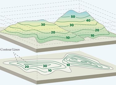 A topographic contour plan represents the site using measured elevation contours, clearly showing changes in height, slope, and landform across the property. Contour intervals are selected based on site scale and complexity to ensure clarity and usefulness for design.