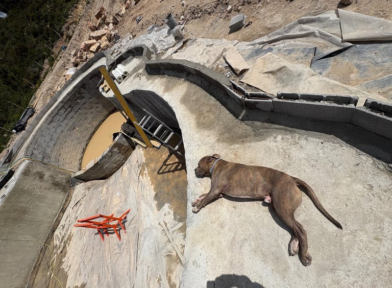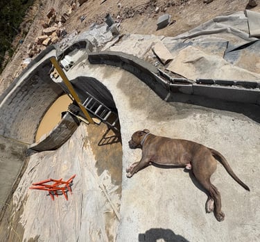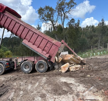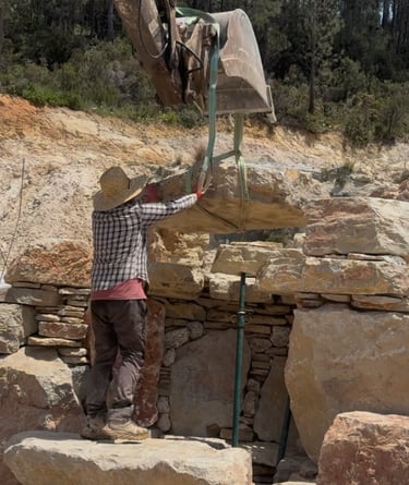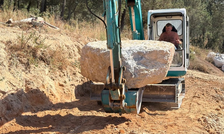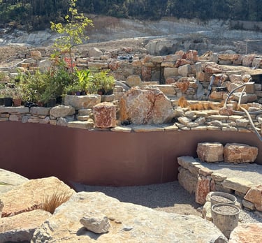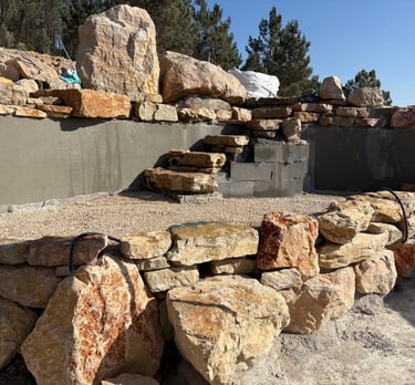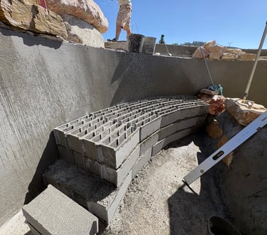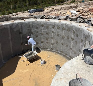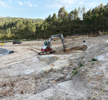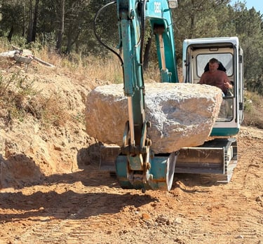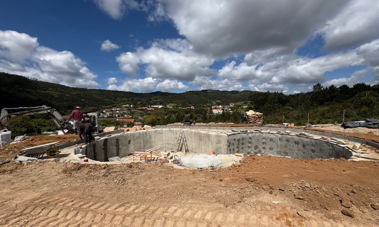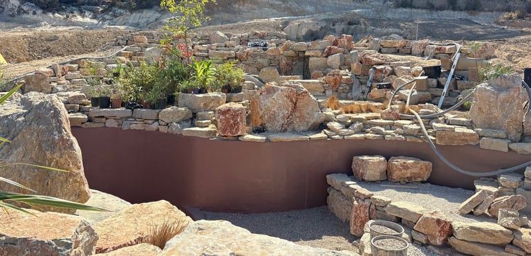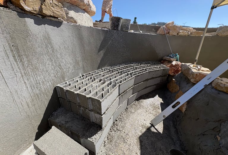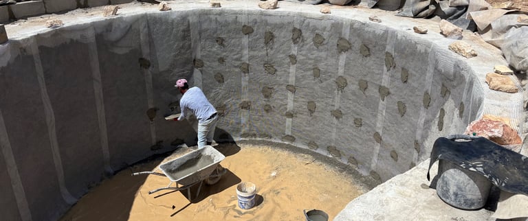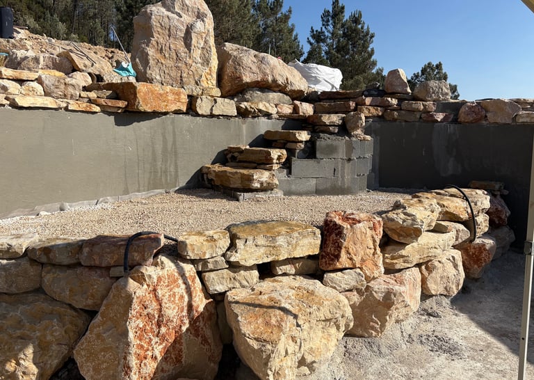 Before construction began, more than 500 cubic meters of soil were excavated, graded, and reshaped to form the precise contours of the future poolscape. Each elevation was sculpted to guide water naturally, define swim zones, and create a stable foundation for stone construction. The process transformed raw terrain into a perfectly balanced base for the multi-level oasis.
