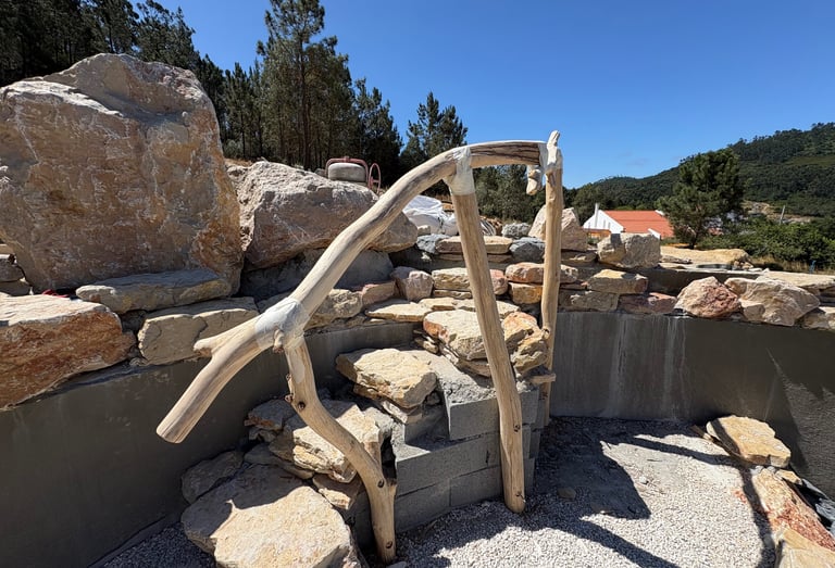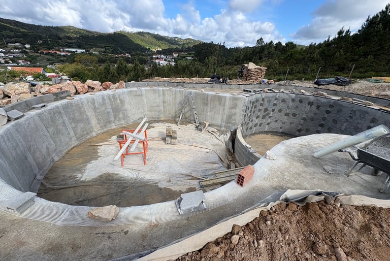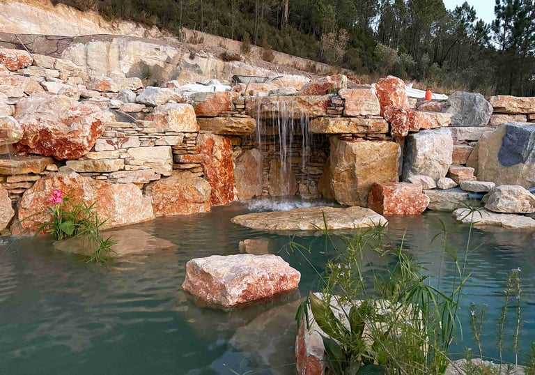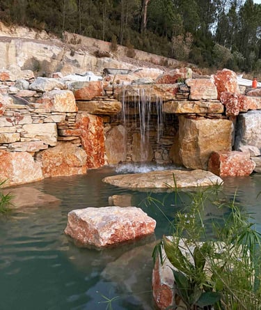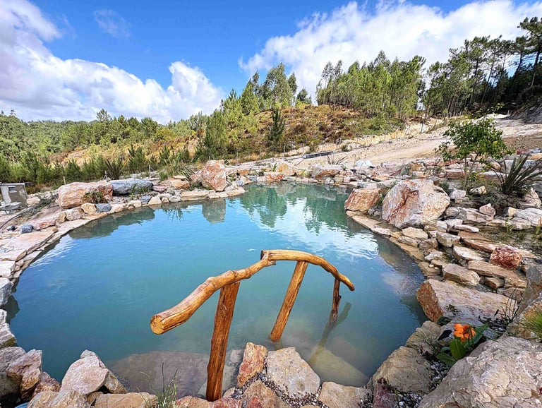 A multi-level natural pool and biopool retreat in Lisbon, crafted by Aqua Vitae Natural Pools Portugal — blending ecology, craftsmanship, and timeless design.